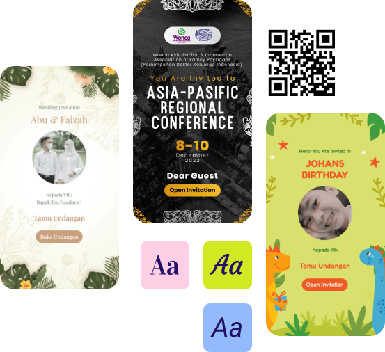 Tersedia lebih dari 300+ tema undangan yang dapat Anda pilih, dan kami terus melakukan update secara berkala sesuai tren serta permintaan dari para klien. Temukan tema yang paling cocok untuk acara spesial Anda!
